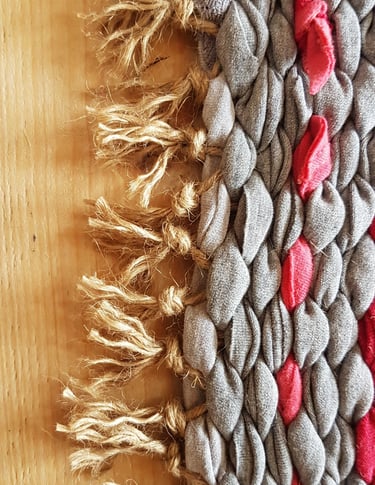 “I love learning and passing on art and craft skills and I am passionate about repurposing and recycling. My family love seeing their old clothes repurposed into beautiful and useful mats which we use around the home.” Lou