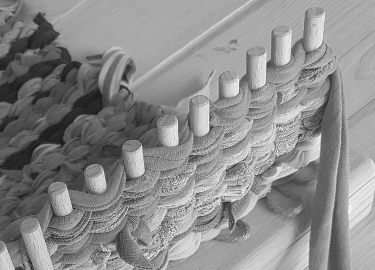 Now you too can learn the ways of the pegloom and start making doormats and more, using your own repurposed fabrics.